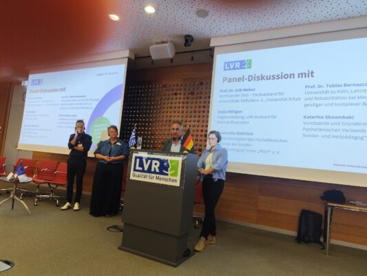 Η πανελλήνια Ένωση Ειδικών Παιδαγωγών, μετά την μακροχρόνια και εξαιρετική επιστημονική συνεργασία με τον μεγαλύτερο φορέα Πρόνοιας της Γερμανίας LVR του Κρατιδίου της Ρηνανίας Βεστφαλίας, οργάνωσαν το Γερμανό -Ελληνικό Φόρουμ στην Κολωνία στις 11- 12 /9/ 2025 με τίτλο ΄΄Ποιείν και Πράτειν΄΄. Στο φόρουμ συμμετείχαν και ο Δήμος Νεάπολης Συκεών, ο σύλλογος Φίλων ατόμων με Αναπηρία ΄΄Αλλάζω΄΄ και ο σύλλογος Γονέων ΄΄Συζωή΄΄.